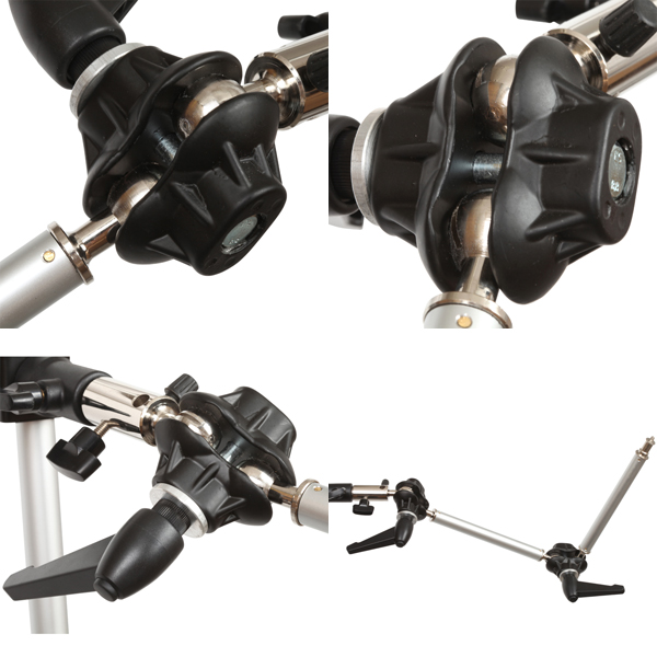 両端に16mm のオスダボがついており、2箇所で自由に角度の変えることができるブームに