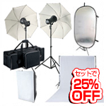 広告写真撮影の現場はストロボフラッシュが主流です。コストパフォーマンス・耐久性に優れた撮影照明です。お手持ちの一眼レフカメラで大量の商品撮影を可能にしたい方、プロの撮影現場ノウハウを凝縮し、より使いやすく簡単な商品撮影機材のセットを厳選しました。商品撮影する上で、撮影に使用する照明機材は必要不可欠なものです。数多く種類のある照明機材の中で、常にストロボはプロカメラマンの要求に応え続けてきました。スタジオ撮影などで肉眼で見た色に、限りなく近い再現をすることが可能な高い演色性。撮影する被写体によって、常に変化を要求される照明ライティングに対応可能な調光機能。過酷な環境の中でも動作し続ける信頼の堅牢性。ストロボが、プロカメラマンの第一の選択となってきた理由は他にも数えきれません。